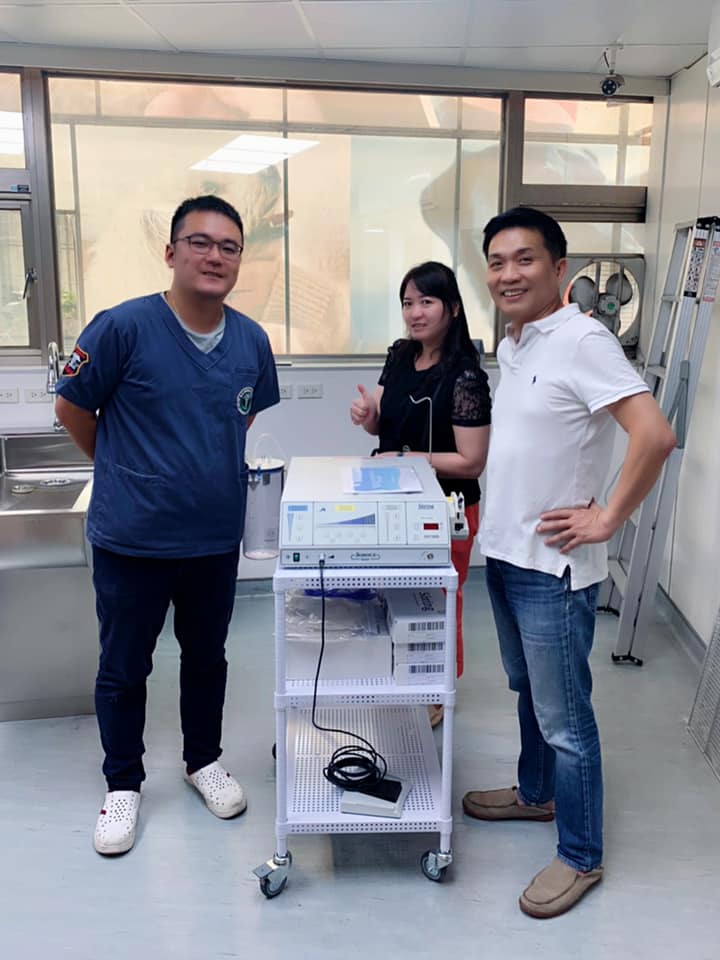 銘謝人人動物醫院中壢分院黃鼎文院長在嚴謹的試用比較後,採購永業成股份有限公司代理德國 Söring SONOCA 300 四合一超音波手術平台,搭配超音波手術吸引手機、超音波椎骨刀手機及超音波清創手機,日後無論是臟器及軟組織腫瘤摘除、IVDD椎間盤減壓手術及傷口護理治療都能安全無虞一體適用,發揮最大臨床效益;中壢地區的毛小孩有福了!