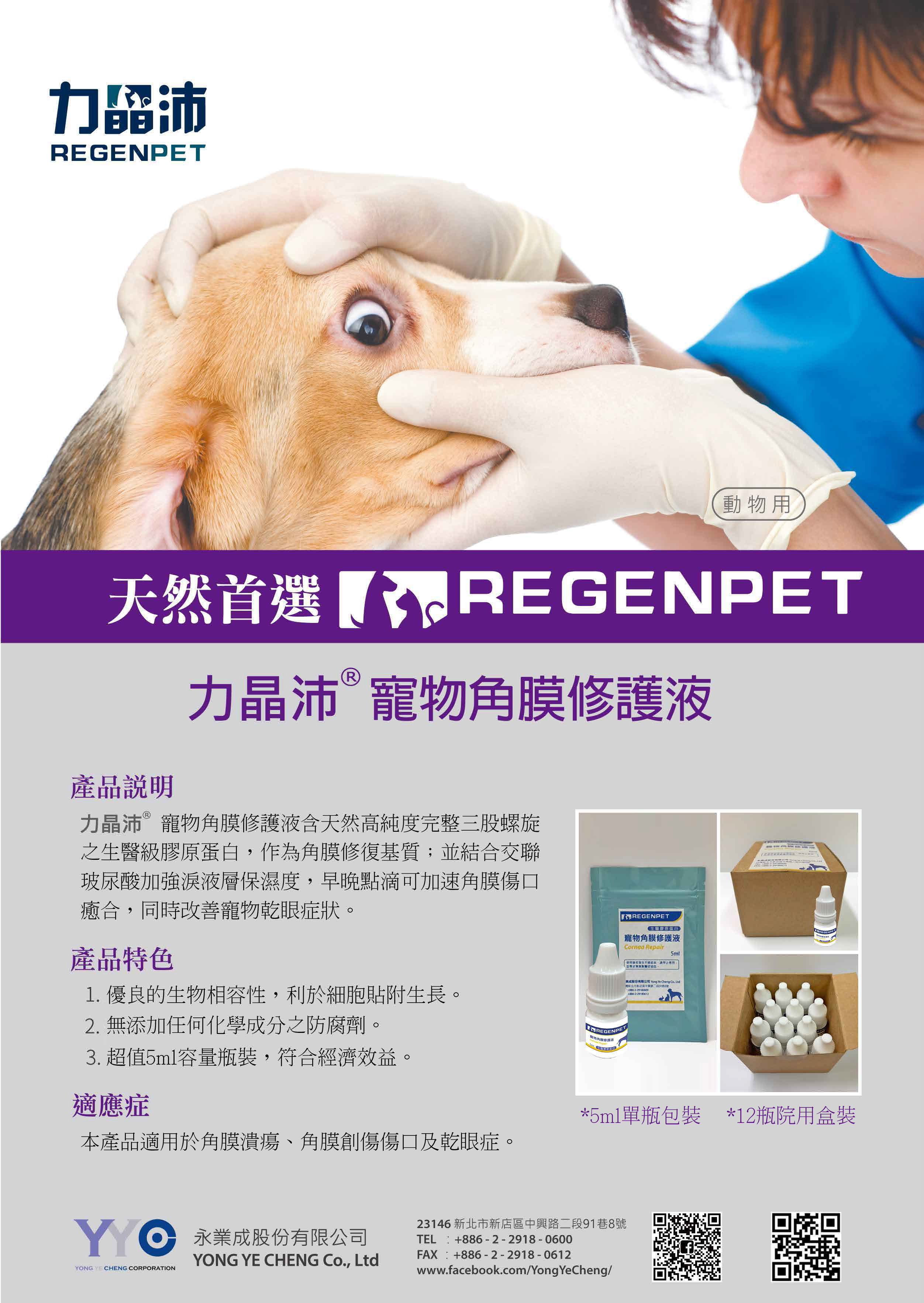 本公司自有品牌力晶沛® 寵物角膜修護液換新包裝加量不加價! 為回饋長期愛用力晶沛® 寵物角膜修護液的動物醫院及飼主,自明年1月1日起本產品更換現有3ml單瓶包裝增量為新的5ml單瓶包裝,售價維持既有價格不變;另外也針對動物醫院通路特別推出新的超值12瓶盒裝價格更加優惠,歡迎有意購買的動物醫院及獸醫師來電或私訊。