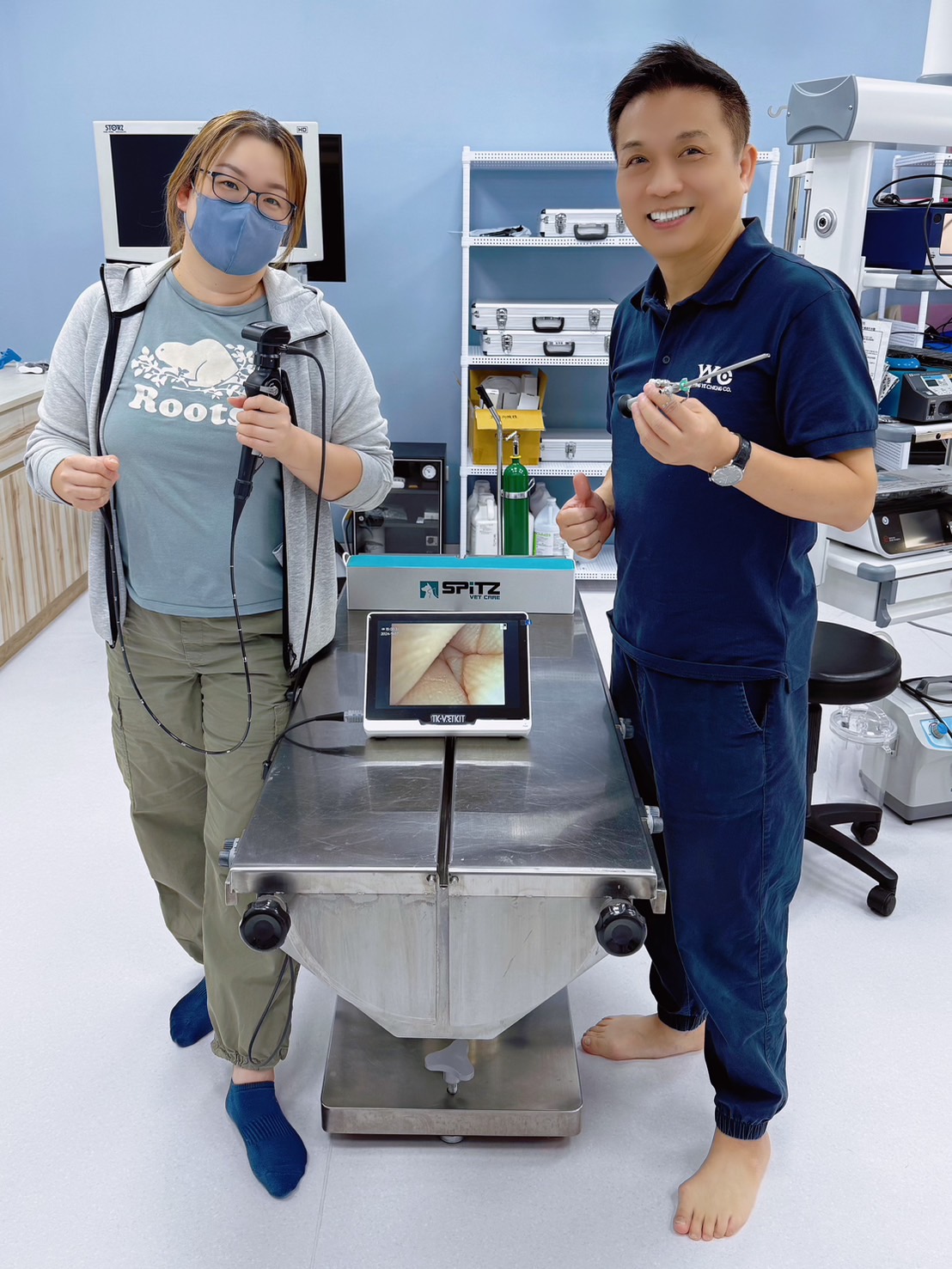 銘謝樂晨伴侶動物醫院長許峰旗院長及李佳盈醫師的支持與肯定,繼購置德國SONOCA超音波外科手術平台及腹腔鏡微創手術系統之後,再度採購本公司代理之德國SPiTZ 2.0mm超細徑可高温滅菌硬式膀胱鏡組及TK-VETKIT 細徑HD高畫質多功能電子內視鏡系統;基於以上高端的建置搭配醫師群的精湛醫術,樂晨伴侶動物醫院已經完全符合內視鏡微創手術中心的要件,必能提供毛小孩更安全及高品質的醫療照護!