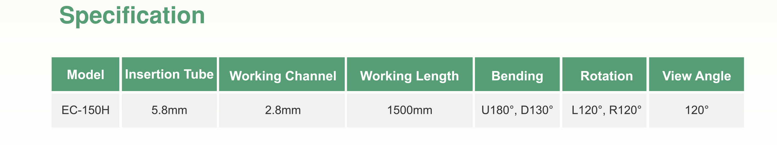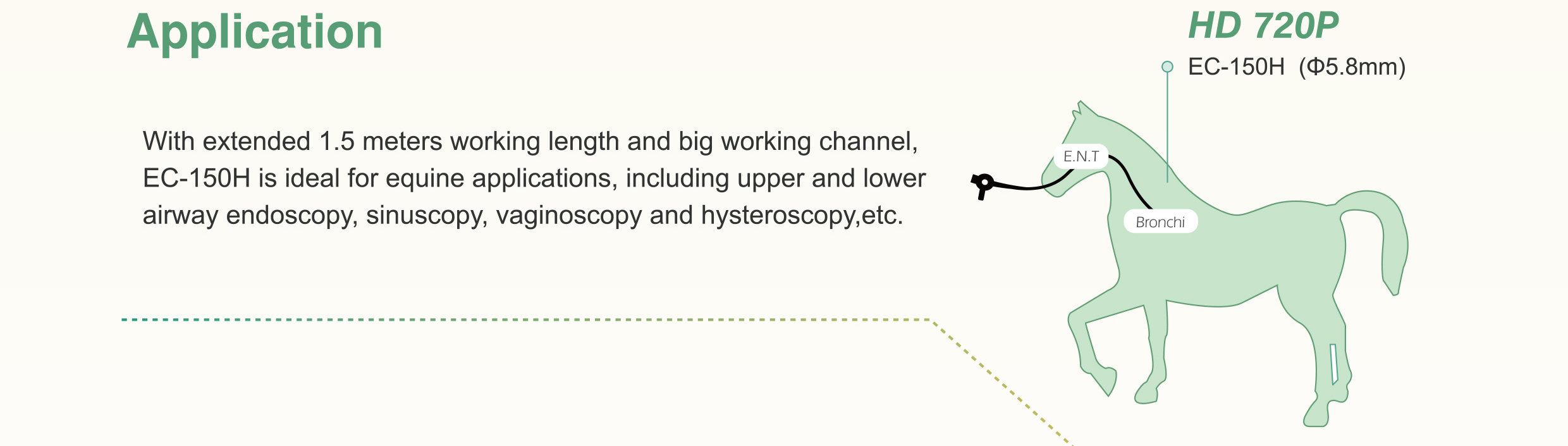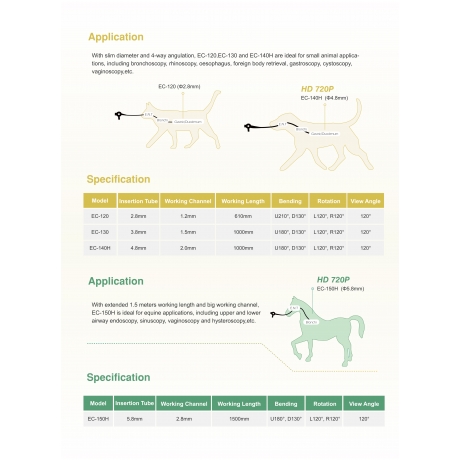 EC-150H具有1.5公尺工作長度和2.8mm器械通道,適 於大動物呼吸道、陰道、 子宮腔等部位檢查。