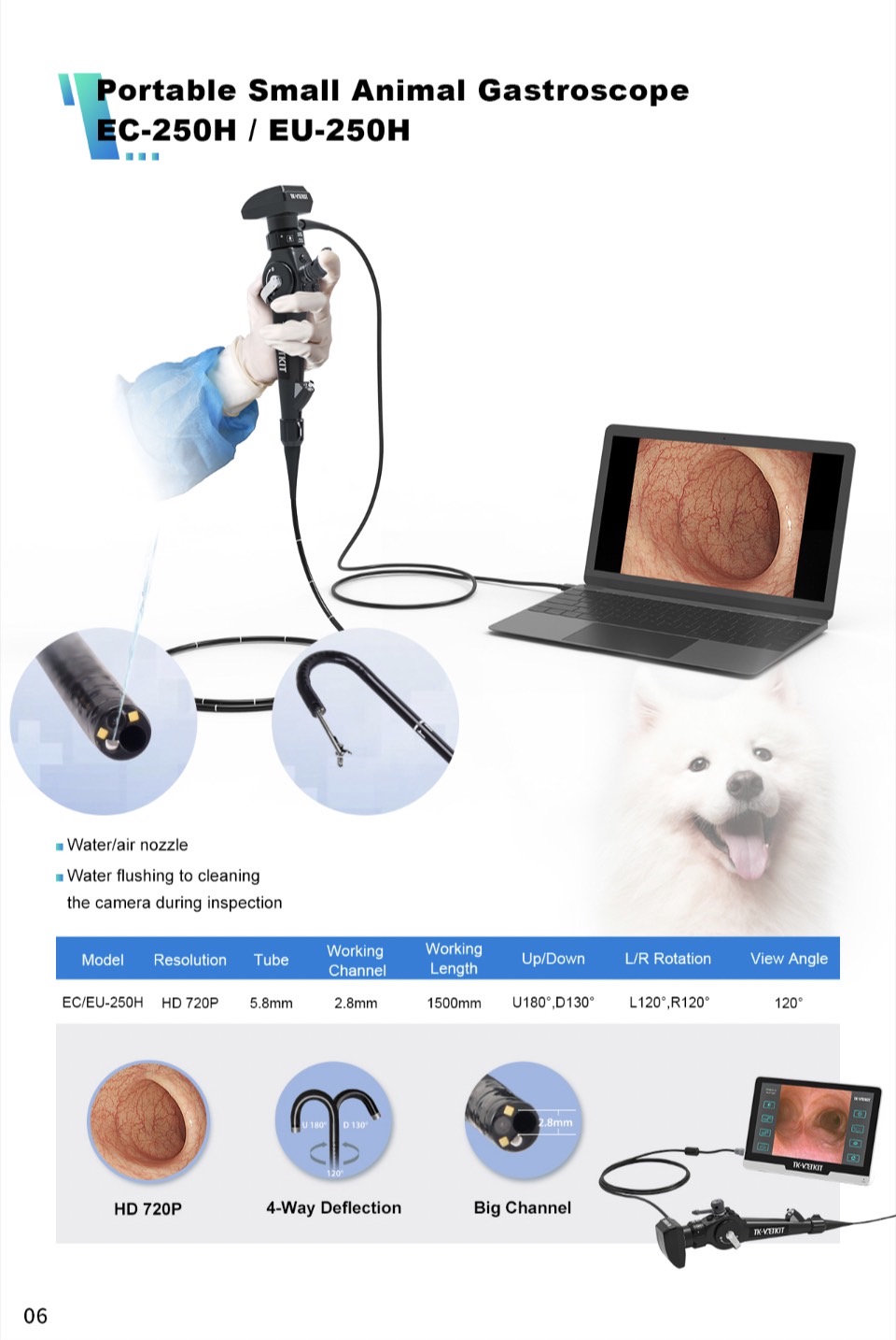 TK-VETKIT EC-250H便攜型HD高畫質動物用內視鏡系統(具打氣打水通道)