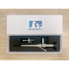 動物醫學中,耳鏡檢查是一種重要的診斷方法。狗外耳疾病的發病率很高,利用其外耳可進入性的特點可方便地進行檢查。使用硬式內視鏡可以檢查中耳道。本公司專為動物量身定做了一套REGENPET自有品牌一體化耳道內視鏡組。它們由一個耳鏡、一個0° 直視光學內視鏡和一個三方活塞組成。 此款一體化耳道內視鏡的形狀和長度使得它能夠在長耳犬的耳道裡進行徹底的檢查。同時,也可用於治療耳朵疾病,如:沖洗耳道、吸出和清除異物以及切開鼓膜等。 基本上可選配行動光源從事目視檢查或搭配REGENPET四合一內視鏡攝影系統為治療方法、未來可行方案和化驗結果提供了一個準確的診斷結果。該一體化耳道內視鏡也可用於口腔及牙齒檢查,除了一體化耳道內視鏡系列外,也可以使用 REVO 2.7 mm 的多功能內視鏡和配件從事耳鏡檢查。