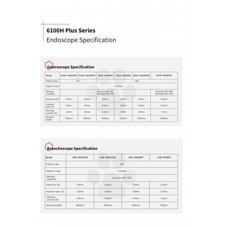 6100 plus系列內視鏡種類繁多,可用於不同器官系統的不同應用,包括胃鏡、大腸鏡、支氣管鏡、鼻咽鏡、膀胱鏡。