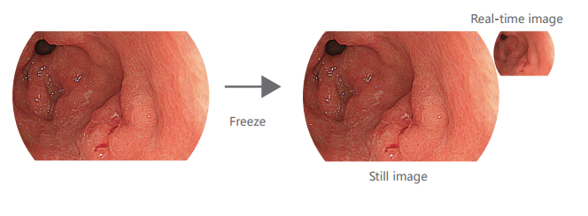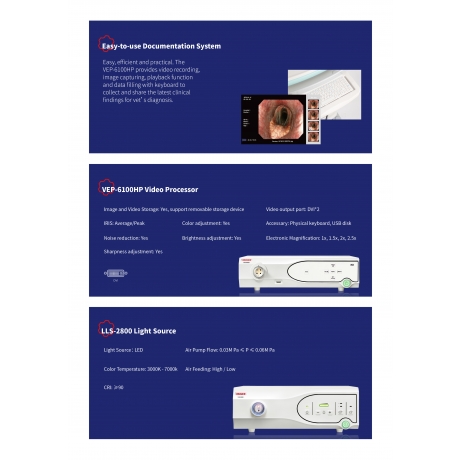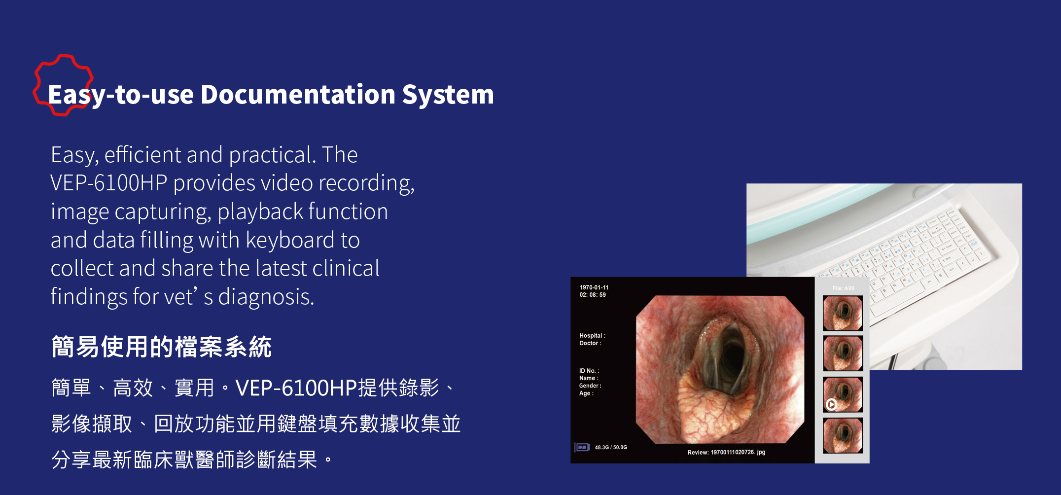 VEP-6100H Plus支援影像擷取與錄影功能。此功能收集並分享最新的臨床發現,以供醫師診斷。記憶體資料可以儲存在USB隨身碟上。