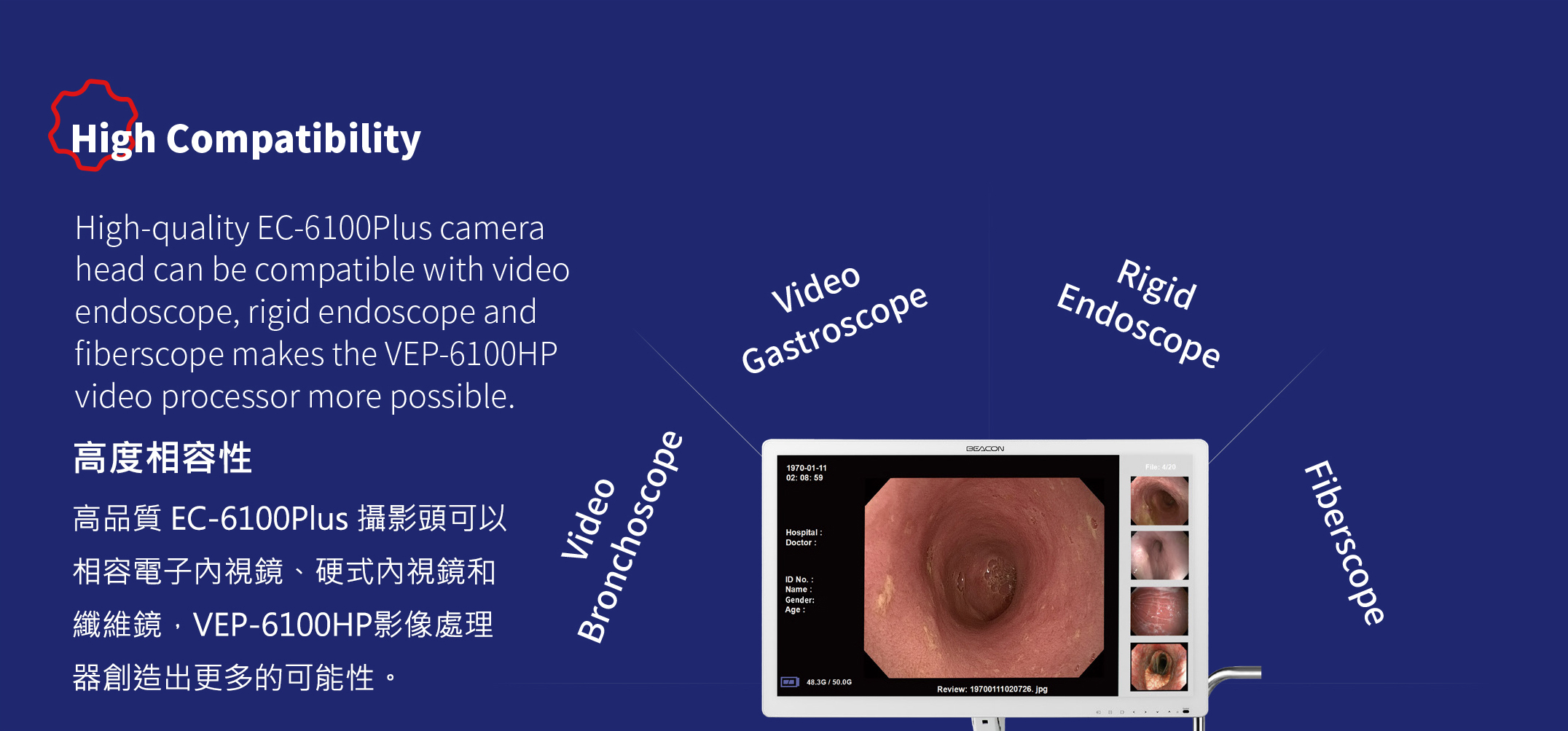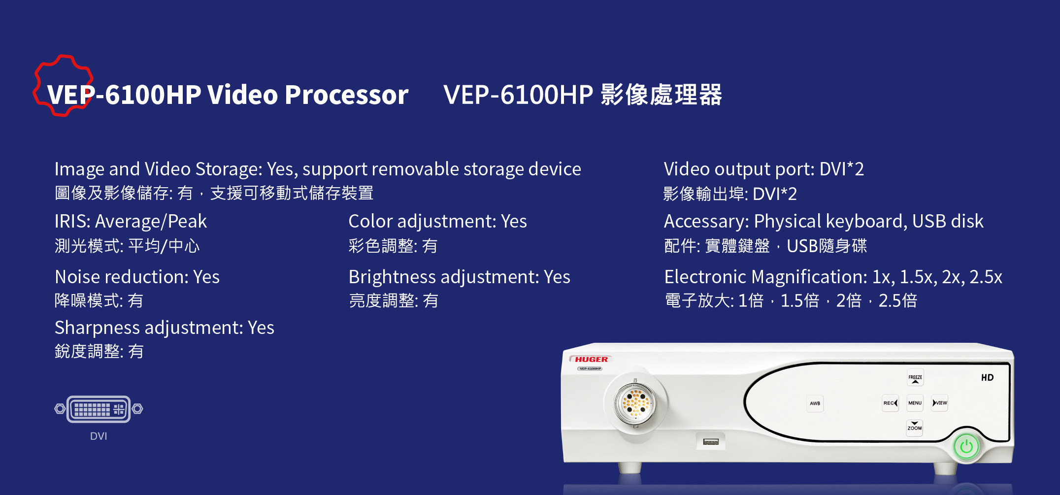 Huger新開發的6100H Plus系列採用尖端的CMOS技術,可提供Full HD全高清影像,有利於觀察黏膜和毛細血管結構的微妙紋理和細節,這將大大提高醫師對診斷準確性的信心。