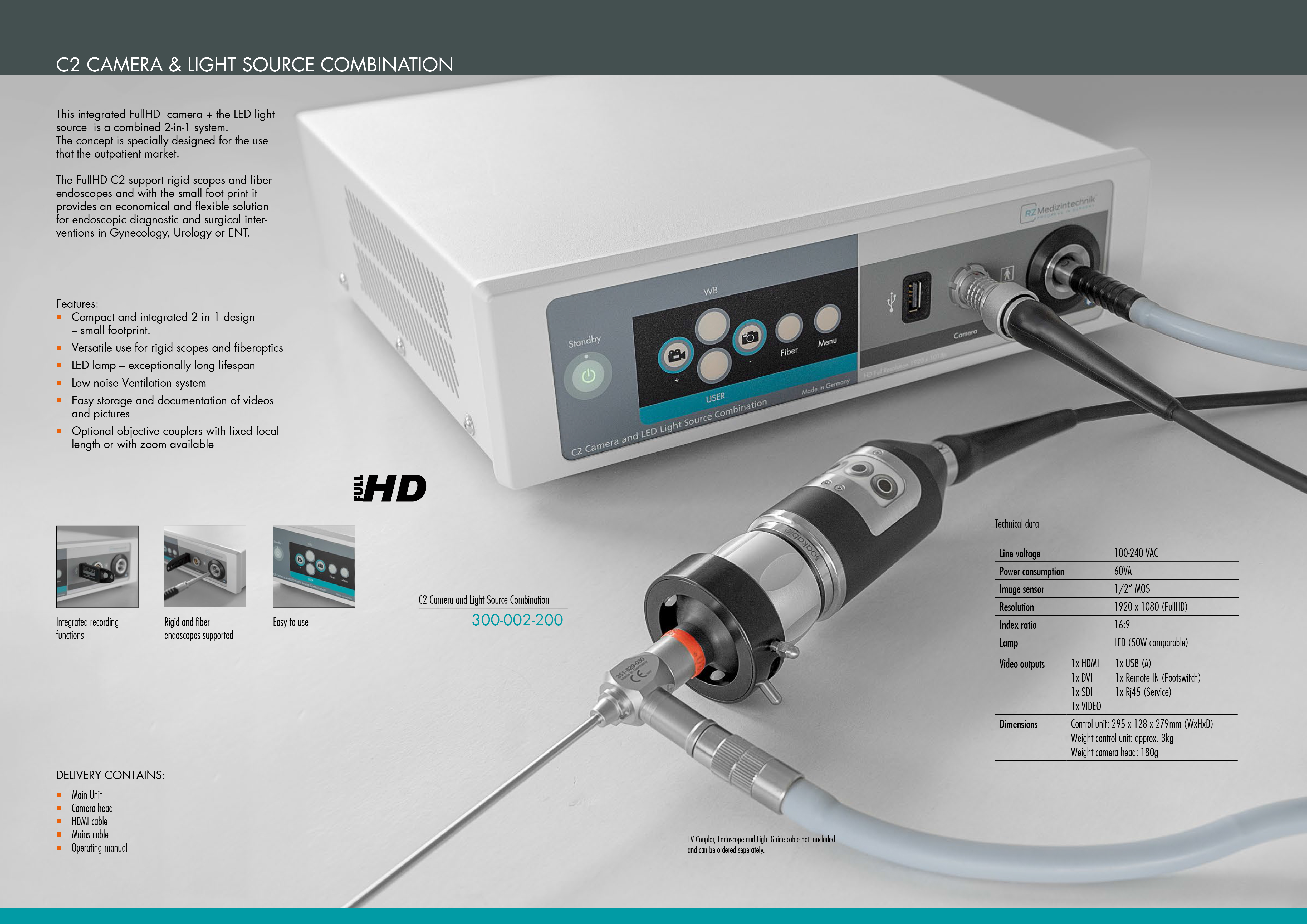 C2 Camera System支援硬式內視鏡和光纖維內視鏡,而且佔地面積小提供經濟靈活的解決方案。
