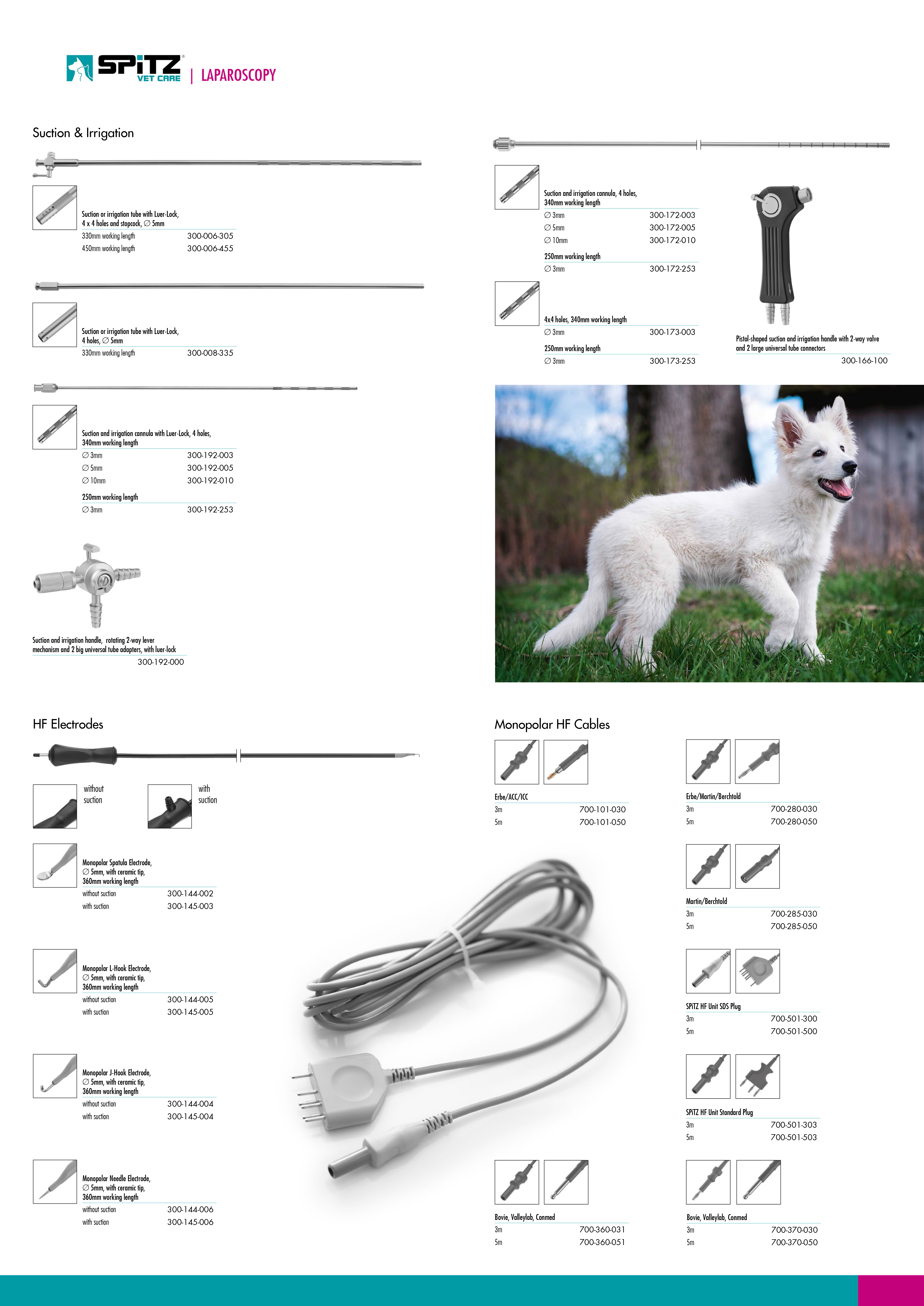 抽吸灌注管(Suction & irrigation)、高頻電極(HF Electrodes)及單極高頻電燒線(Monopolar HF Cables)