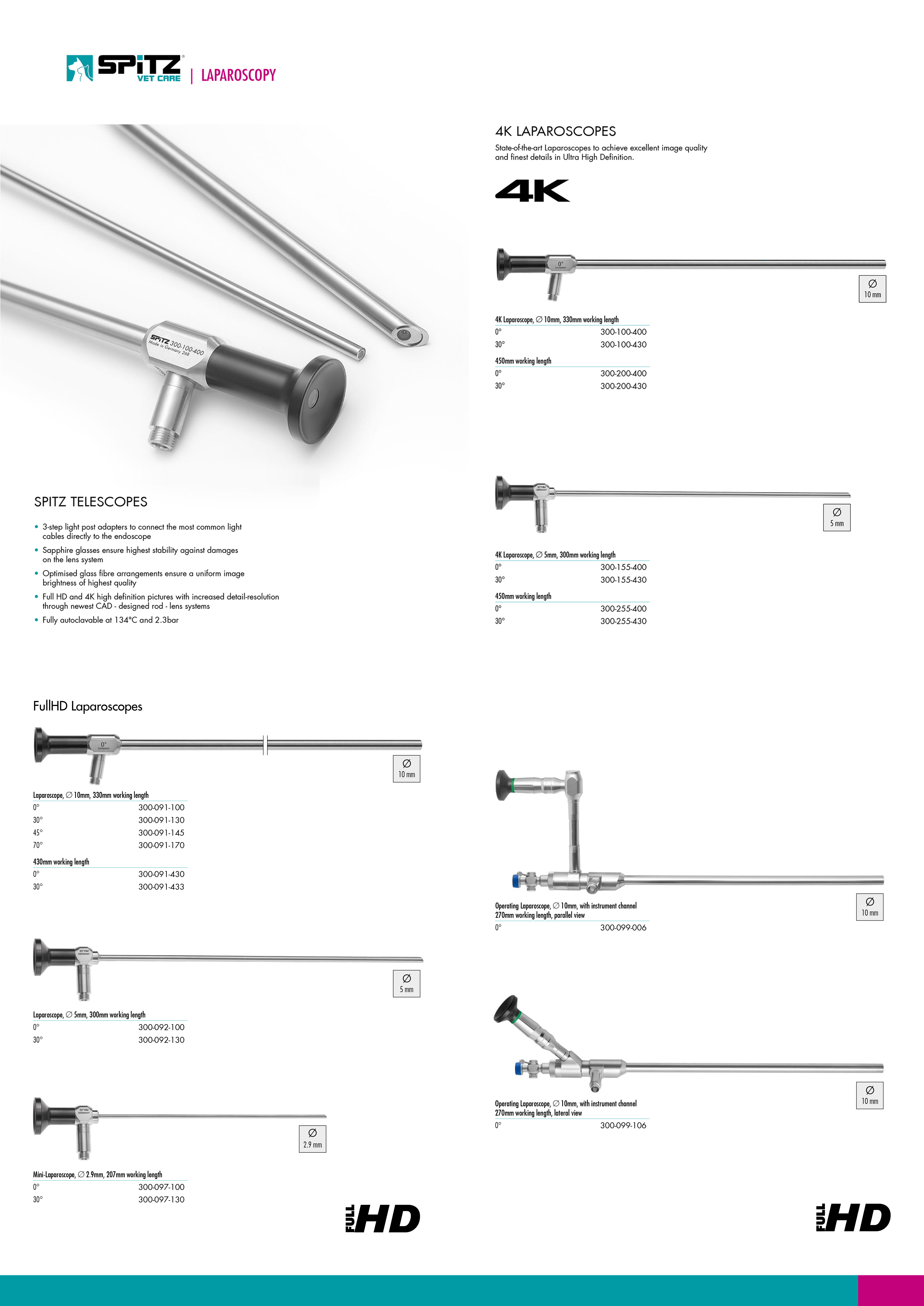4K腹腔鏡(4K Laparoscope)、Full HD腹腔鏡(Full HD Laparoscope)及處置型腹腔鏡(Operating Laparoscope)